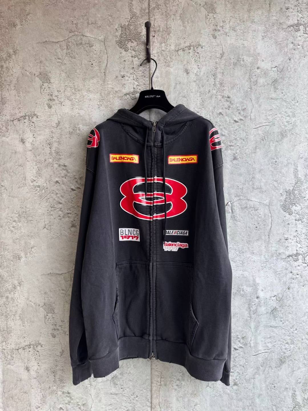 발렌시아가 2026 럭셔리 로고 와펜 후드 집업 자켓