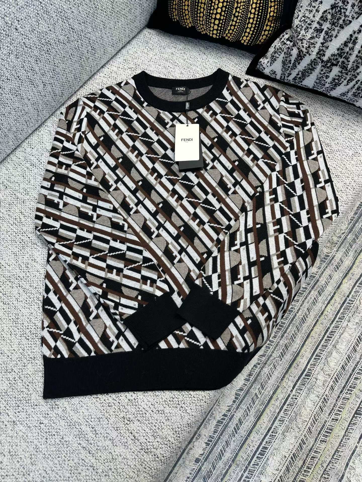 펜디 2025 풀오버 멀티컬러 자카드로고 라운드넥 니트